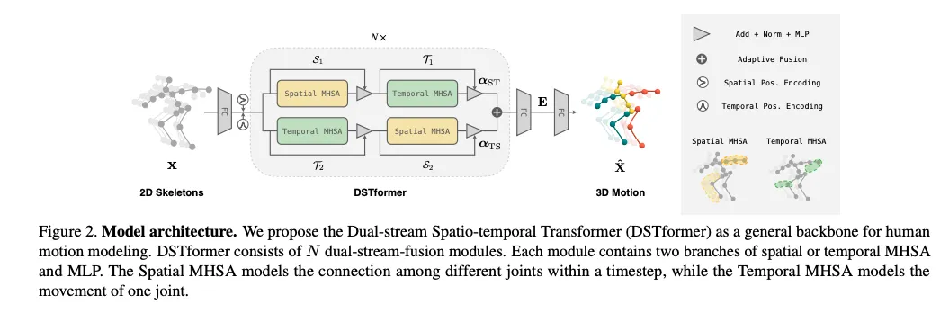motion encoder로 DSTformer(Dual-stream Spatio-Temporal Transformer)를 제안함으로써 키포인트 간의 long-range 관계를 포착함