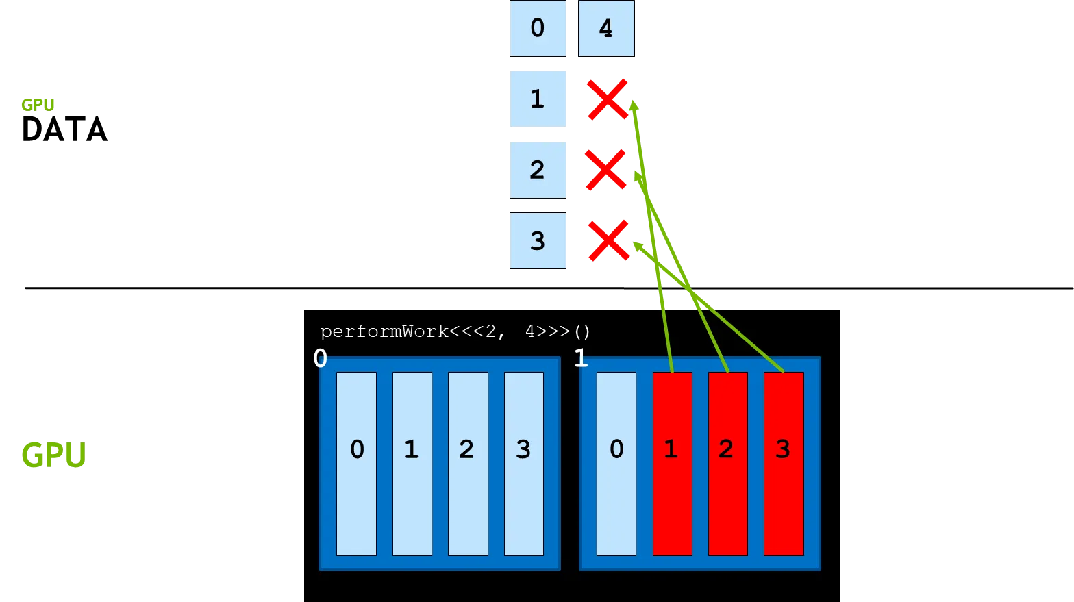 이상적인 상황에선 아래 그림과 같이 모든 데이터가 각 GPU 쓰레드에 모두 할당되게 된다.