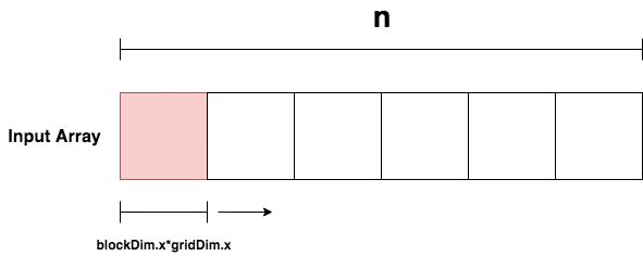 그리드 당 쓰레드 수 만큼 이동하여(blockDim.x * gridDim.x) 마찬가지로 연산을 진행한다.