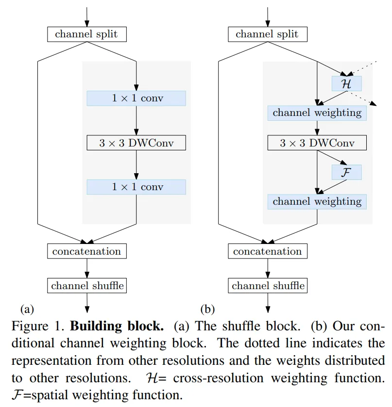 shuffle block 내에 있는 1x1 convolution을 대체하기 위해 conditional channel weighting unit을 적용하였다.