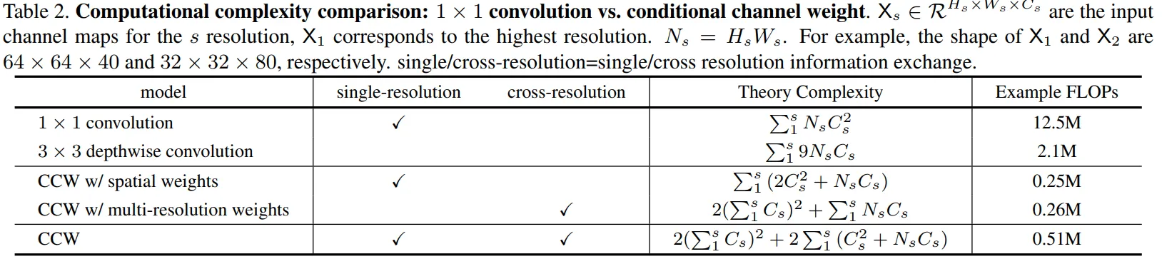 본 연구는 백본 네트워크에 관한 연구로써 적은 파라미터 수로 좋은 성능을 내는 네트워크에 대해 소개한다. 대표적으로 conditional channel weighting이라는 효율적인 유닛을 소개하며 이는 shuffle block의 pointwise (1x1) convolution을 대체한다. 가령 다중 해상 피쳐인 64x64x40과 32x31x80에 대해 conditional channel weighting unit은 기존의 shuffle block의 전체 계산 복잡도를80%까지 줄일 수 있다.