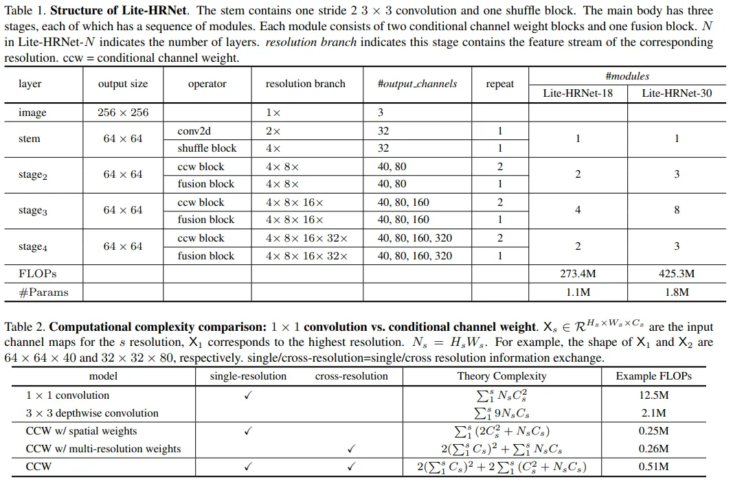 일반적인 컨볼루션 커널의 가중치의 경우 모델의 파라미터로써 학습을 진행하지만 이와 달리 제안된 schema weight의 경우 lightweight unit을 통해 입력 맵에서 conditioned 되고 채널 전체에서 계산된다. 그러므로 모든 채널맵에 대한 정보를 모두 포함하고 있고 채널 weight를 통해 정보를 교환하는 bridge로써 활용된다. 게다가 병렬 다중 해상 채널 맵으로 부터 가중치가 계산되기 때문에 HRNet이 강건하고 가중치에 많은 정보를 포함할 수 있도록 한다. 본 연구에서는 이 네트워크를 Lite-HRNet이라 이름 붙였다.