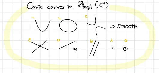 이차식은 아래 8가지로 분류된다. 이차곡선(Conic curve)은 8가지 중 스무스함수인 위쪽의 4가지(포물선, 원, 타원, 쌍곡선)을 의미한다.