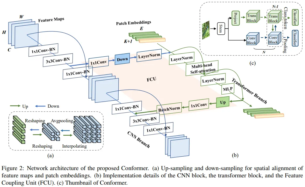 본 연구에선 CNN와 ViT를 합치는 새로운 이중 네트워크 구조인 Conformer를 제안하였다. Conformer를 통해 컨볼루션 연산이 local feature를 추출하고 self-attention 매커니즘이 global representation을 추출 할 수 있도록 하였다. 실험을 통해 Conformer가 유사한 컴퓨팅 연산과 파라미터에서도 CNN과 ViT의 성능을 모두 능가함을 보였다. downstream 태스크에서 본 구조가 간단하고 효율적이면서도 가장 좋은 백본 네트워크임을 확인하였다.