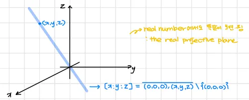 을 지나는 위의 직선(line)들을 복소사영평면(complex projective plane)이라고 한다.