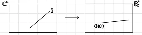 : 복소 사영 평면(complex projective plane). 복소(complex)는 , 사영(projective)는 , 평면(plane)은 에 해당한다.