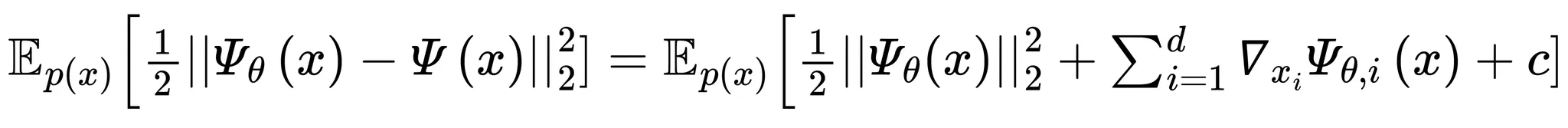 explicit score matching 식에 대해 라 하면 아래 좌항과 같이 표현할 수 있으며 우항처럼 연산하는 방식을 implicit score matching라 함