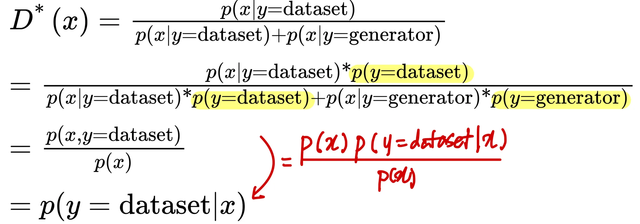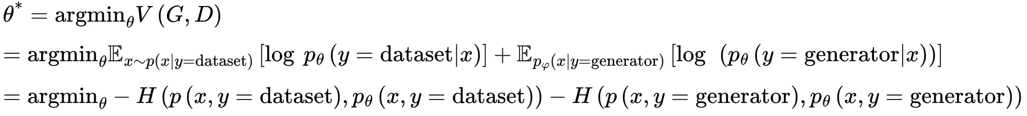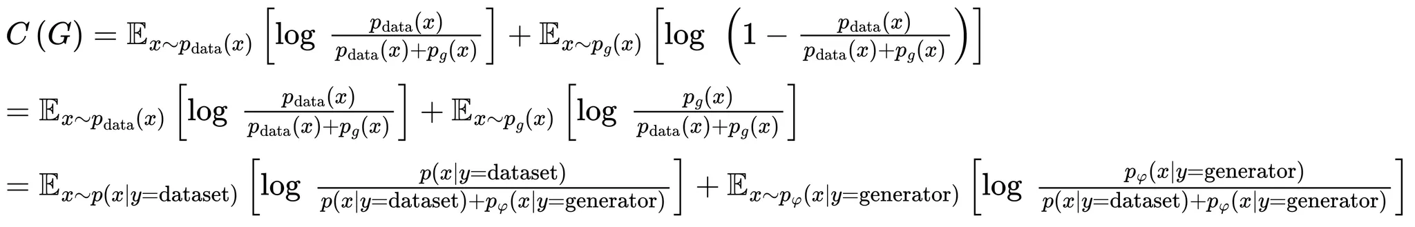 또한 데이터셋으로 부터 가져온 샘플의 우도와 generator로부터 가져온 샘플의 우도가 같은것을 이용하면 이므로 아래와 같이 더 간소화 시킬 수 있음