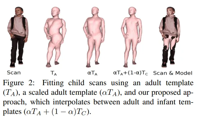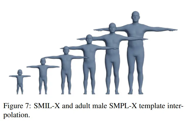 해당 과정을 진행하기 위해 SMPL-X의 템플릿 와 SMIL의 템플릿 을 보간하는 과정을 통해 어린이의 모습을 표현하고자 하였다.