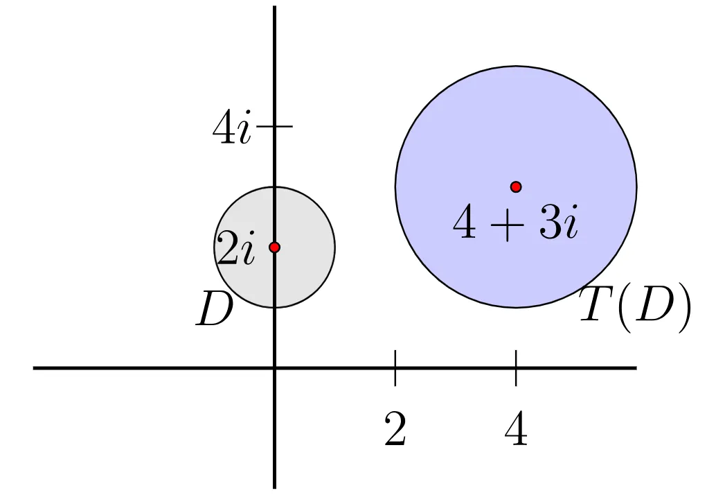 예를들어 변환(transformation) 에 대한 고정점을 찾기위해선 를 만족하는 z를 찾아야 하므로 가 된다. 따라서 가 원판(disk) 를 로 이동시킬 때 에 해당하는 점들(points)은 움직이지 않는다.