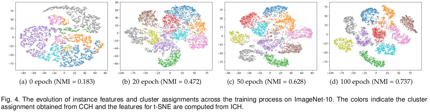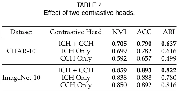 기존 연구들이 인스턴스 레벨과 클러스터 레벨의 representation을 한번에 하는것과 달리 본 연구는 이를 분리하여 ICH, CCH라는 두 개의 헤더로 분리하여 네트워크를 설계하였다. 각 데이터는 유사한것 끼리 붙고 다른것 끼리 떨어진다는 것만 적용한게 기존 방식이라면 본 방식은 각 데이터 뿐 만 아니라 전체 군집도 유사한 방식으로 적용한다는 것이 된다.